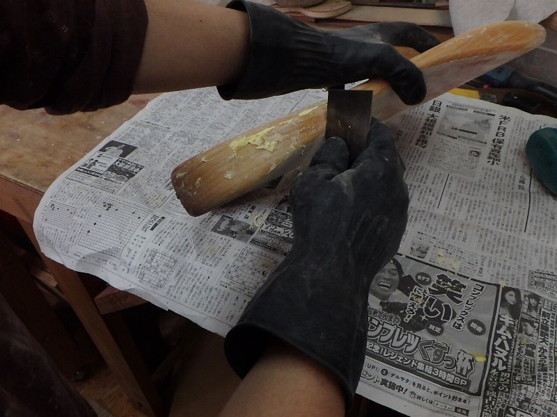 打痕や擦り傷、塗装の割れ(ウェザーチェック)取り除くためにオリジナルの塗装を剥いで再塗装いたしました。