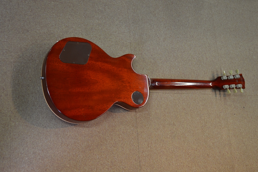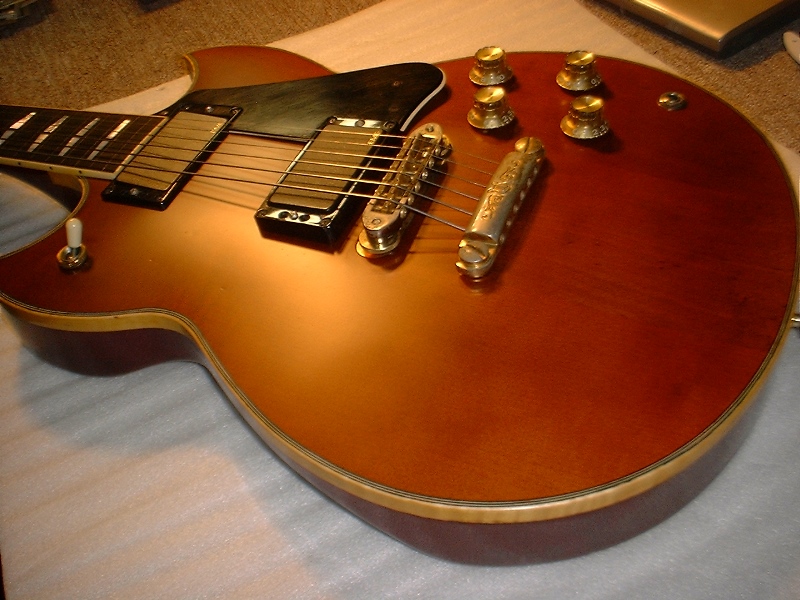 トップはハニーバースト、バック、ネックはライトブラウンでラッカー塗装、モデル名が入っているヘッドの表はサンディングしてオーバーラッカーいたしました。 -