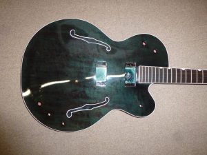 メーカー グレッチ モデル名 テネシーローズ 年代 1990 作業内容 ボディ・トップ 再塗装 ボディトップの塗装を剥がして緑色にリフィ二ッシュ。