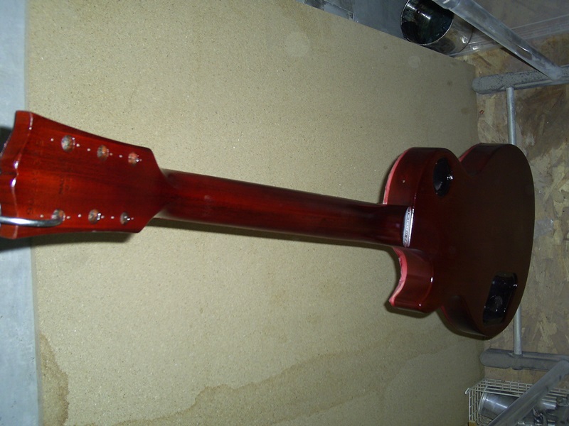メーカー ギブソン モデル名 レスポール スタンダード 年代 1990 作業内容 ボディ・ネック 再塗装 エボニーフィニッシュのレスポール スタンダードをネック・ボディ共に一度塗装を剥ぎ生木の状態から再塗装。